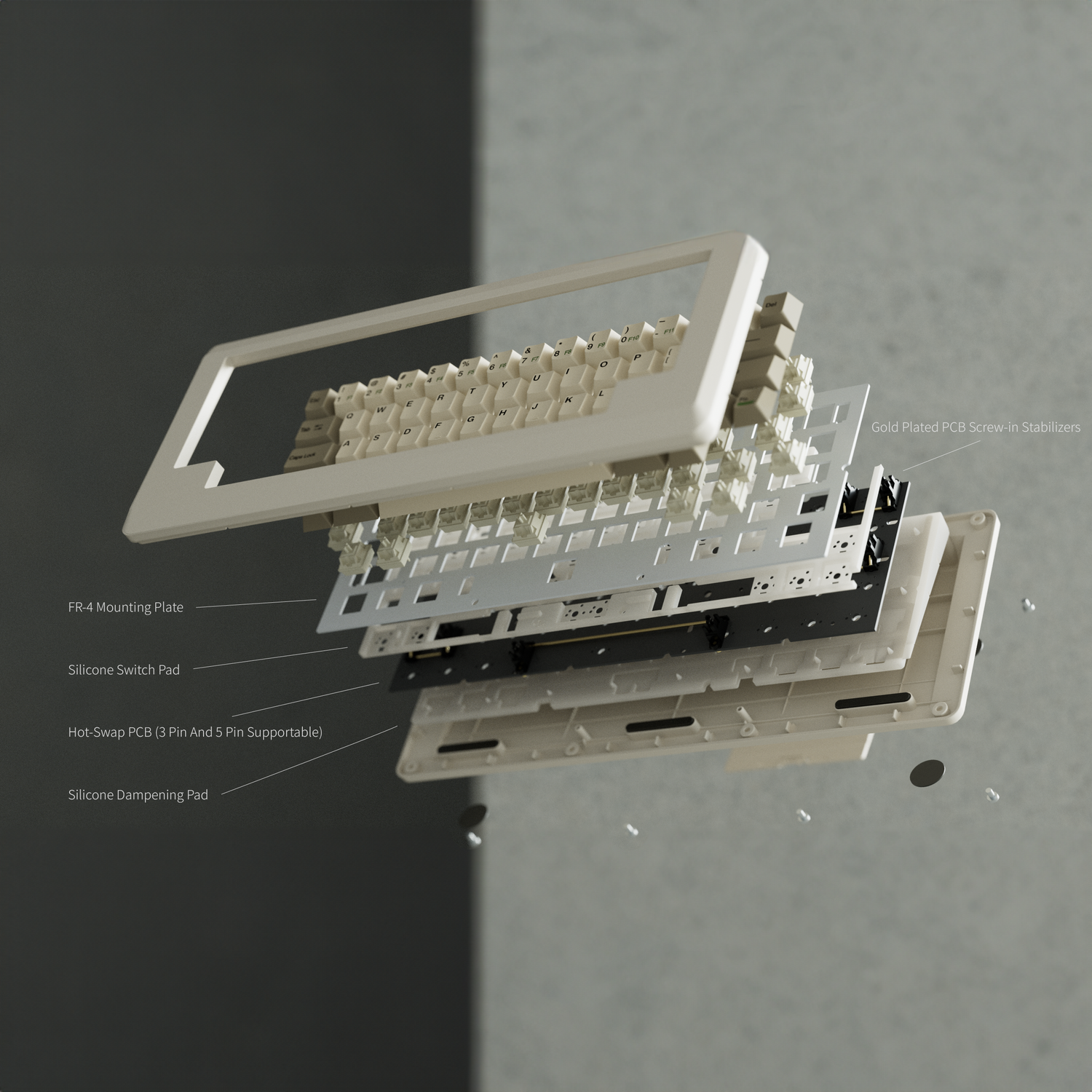 采用Gasket结构,搭配一体成型矽胶垫和底部矽胶垫,打造完美的吸音与减震效果