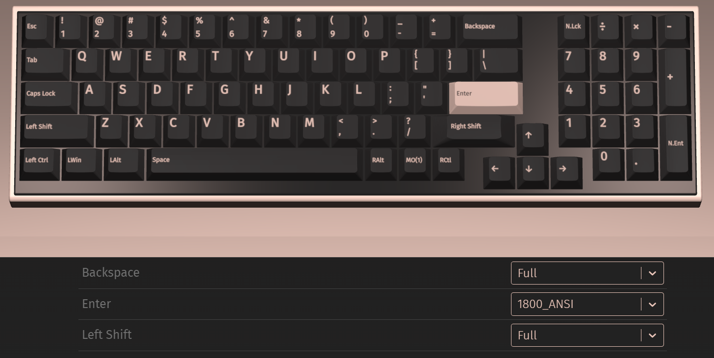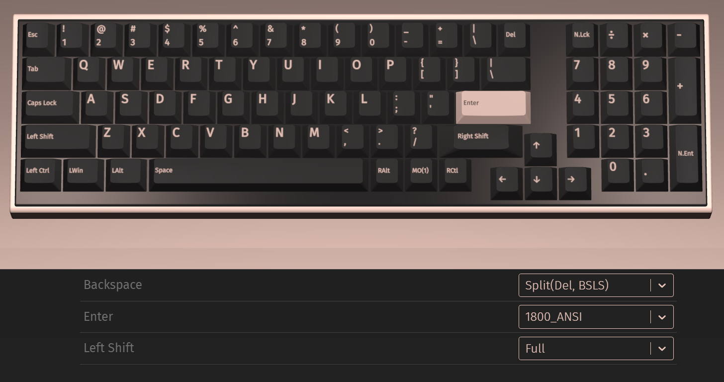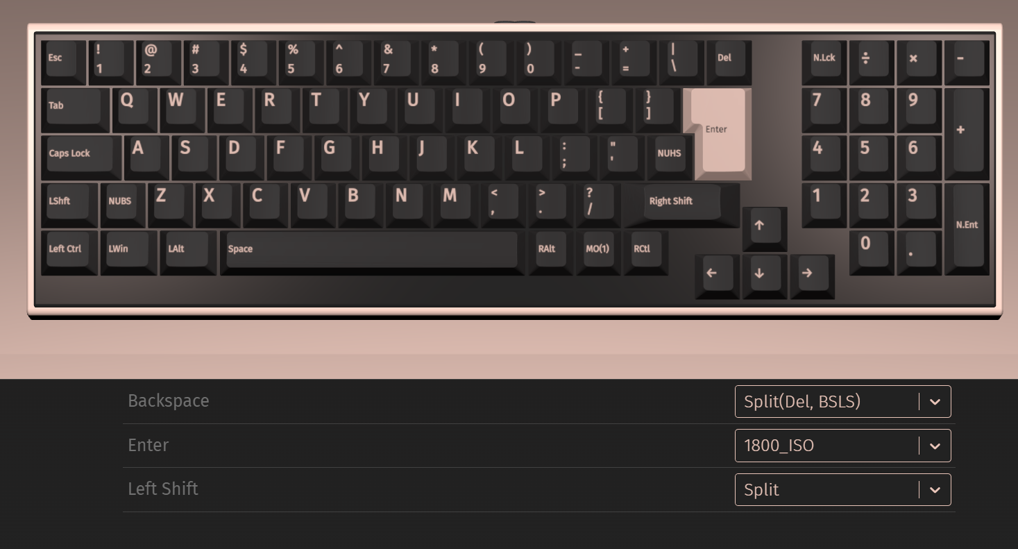 如欲更换配置(1800/美规/欧规/分裂Bksp),请透过VIA 介面中左下第二个"layout" icon 切换配置