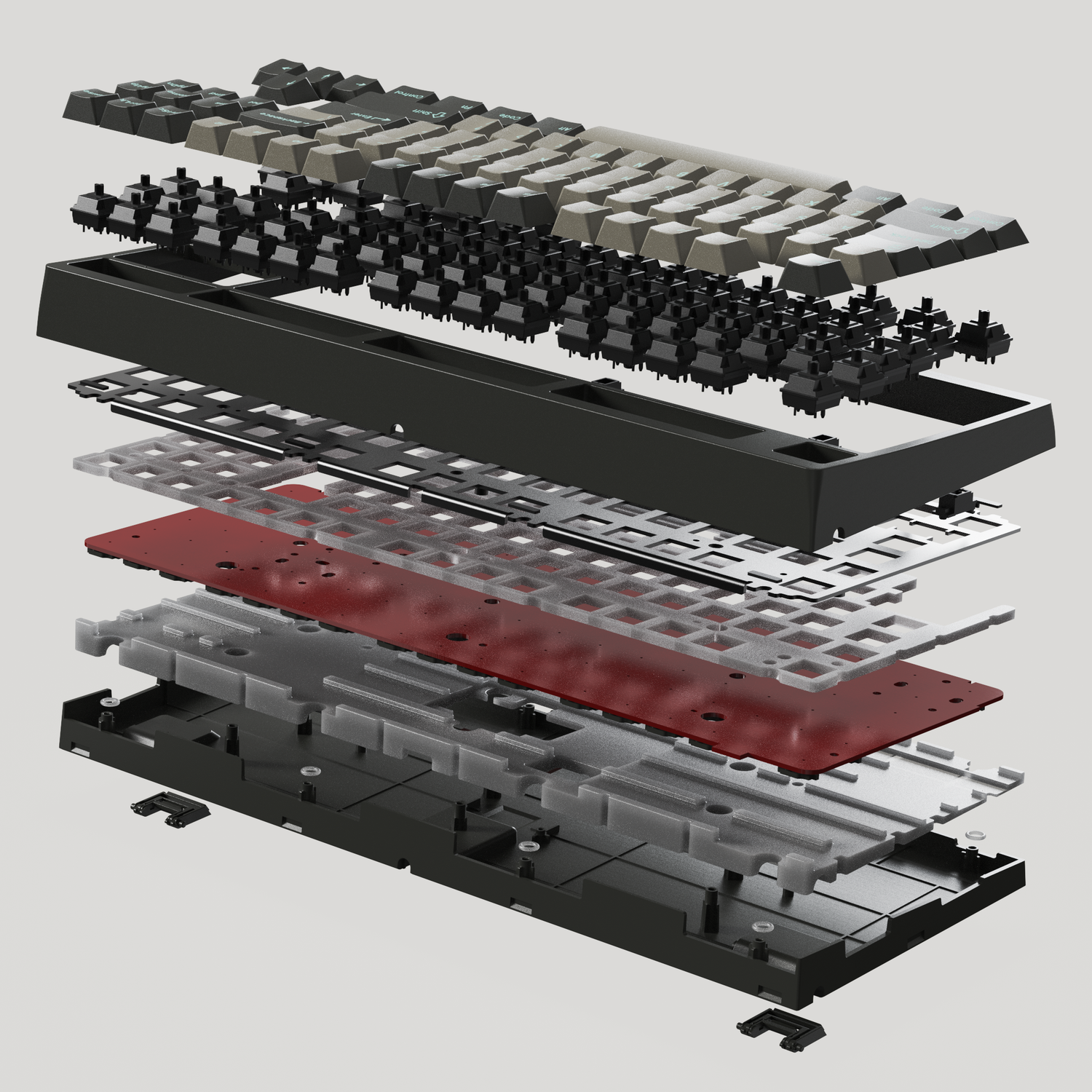 - 上、下盖采用橡胶环减震设计(O-ring Dampeners),能有效降低键帽按下时所产生的声音与振动,提供更加宁静的使用体验。相较于其他减震材质,橡胶环减震设计具有更高的耐用性,能够长时间维持稳定的效果